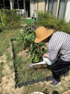 そうそう 先日植えた畑ですが 暑さで中々成長が難しかったのですが、ナスとオクラが無事お味噌汁の具材となりましたよ (*^^)v